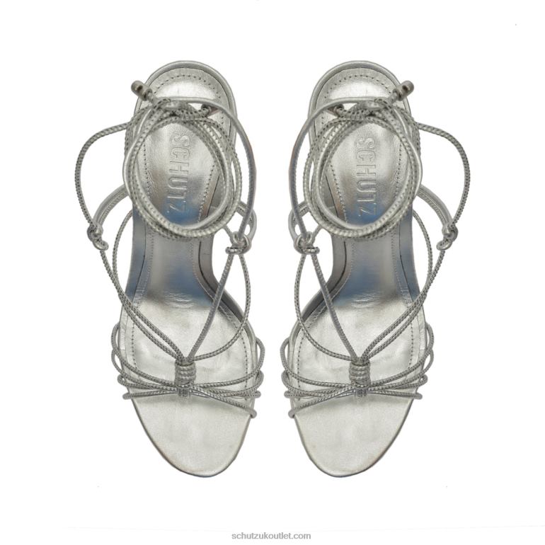 Materials: Metallic Leather | Cow leather lining | Cow leather outsoleUpper format: MultistrapsHeel Type: High HeelHeel Style: StilettoClosure Type: Lace upToe Style: Round toeCounter Type: OpenHeel Height: 3.9in | 100mmRubber patch at the heel.