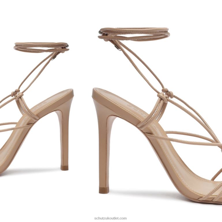 Materials: Leather | Cow leather lining | Cow leather outsoleUpper format:MultistrapsHeel Type: High HeelHeel Style: StilettoClosure Type: Lace up Toe Style: Round toeCounter Type: OpenHeel Height: 3.9in | 100mmRubber patch at the heel.