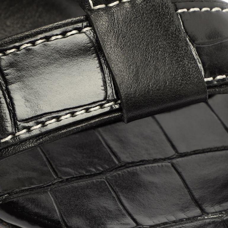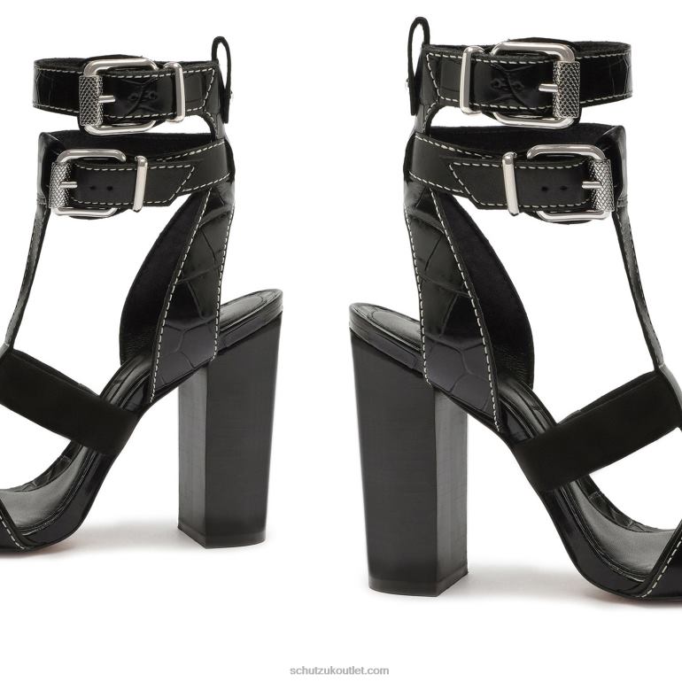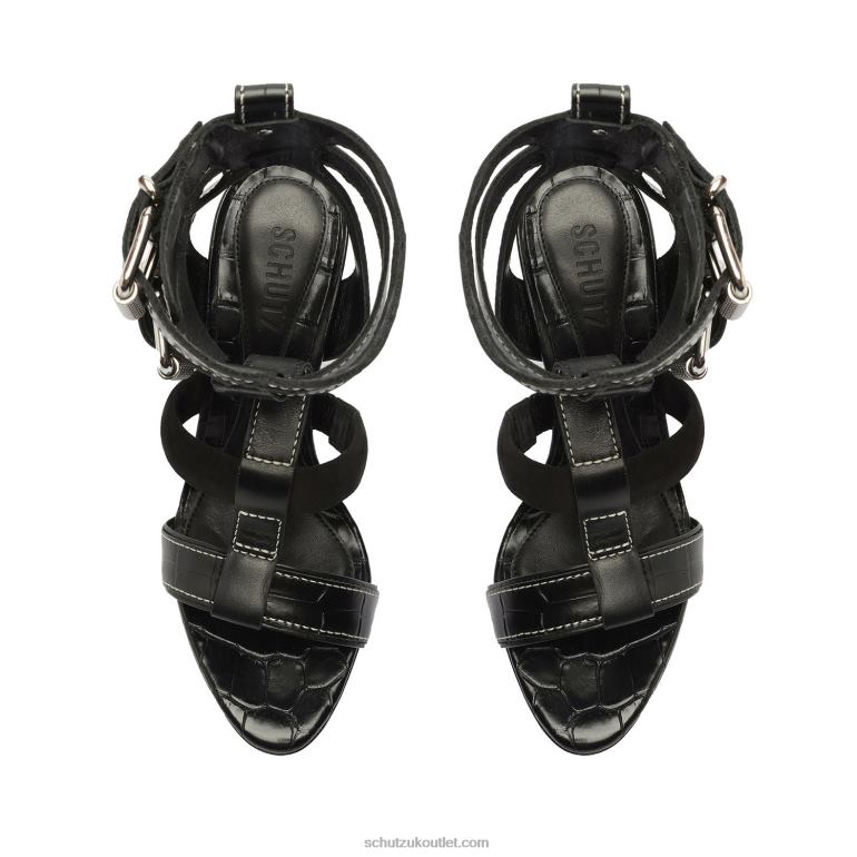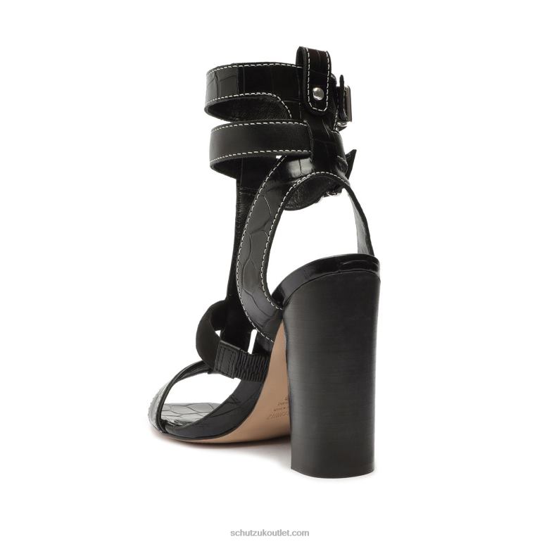 UK Schutz Chantelle Crocodile-Embossed Leather Sandal Black 806T8131