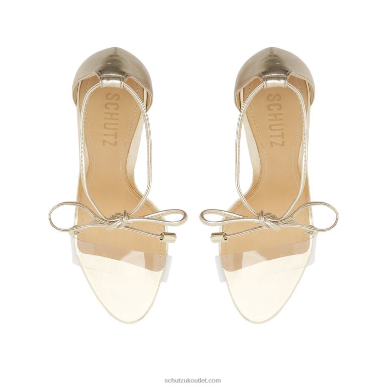 Metallic leather meets see-through vinyl on this mixed-media sandal. Perfect for after dark, it features a feminine ankle tie and stiletto heel.