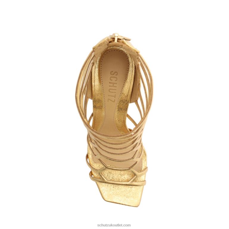 Materials: Metallic Leather| Cow leather lining | Cow leather outsoleUpper format: MultistrapsHeel Type: High HeelHeel Style: StilettoClosure Type: Zip closureToe Style: Square toeCounter Type: ClosedHeel Height: 4.3in | 108mmRubber patch at the heel.