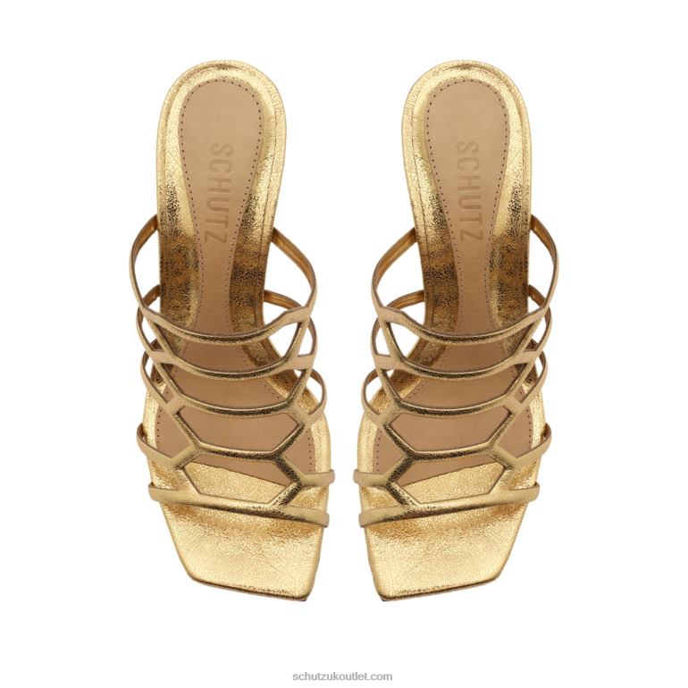 Materials: Metallic Leather | Cow leather lining | Cow leather outsoleUpper format: MultistrapsHeel Type: High HeelHeel Style: StilettoToe Style: Square toeCounter Type: OpenHeel Height: 4.3in | 108mmRubber patch at the heel.