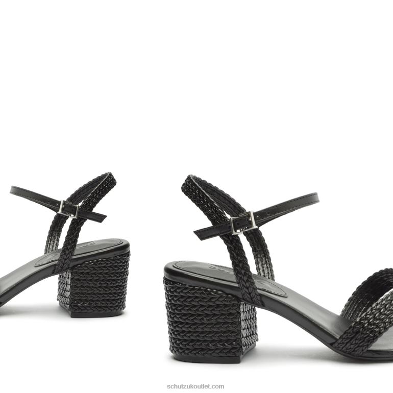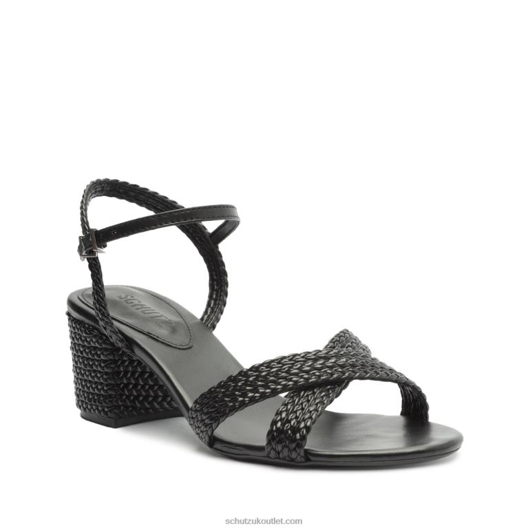 UK Schutz Karima Block Atanado Leather Sandal Black 806T842