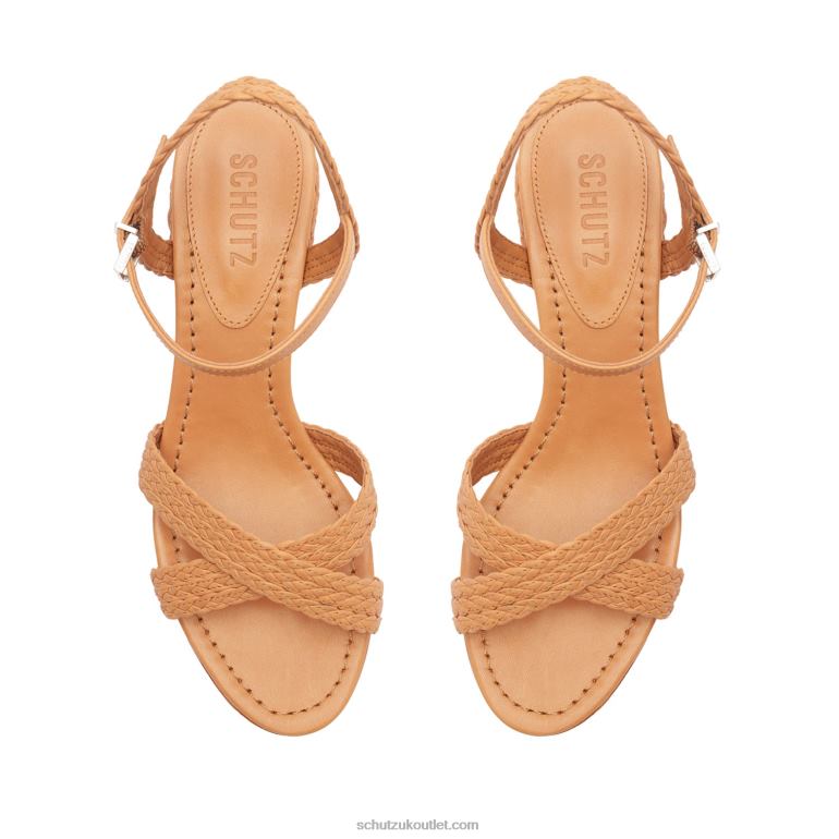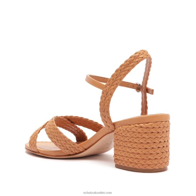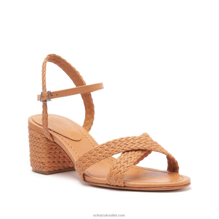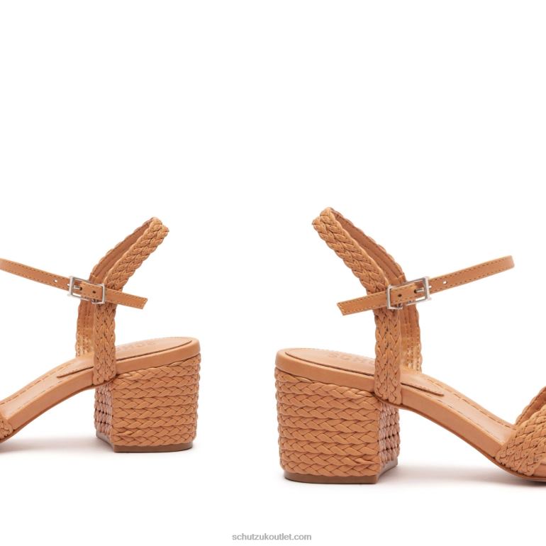 UK Schutz Karima Block Atanado Leather Sandal Honey Peach 806T862