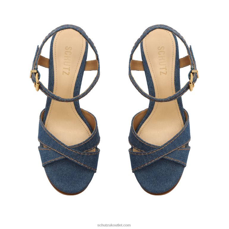 Our signature platform returns. The Keefa is finished in denim with a platform and soaring heel.