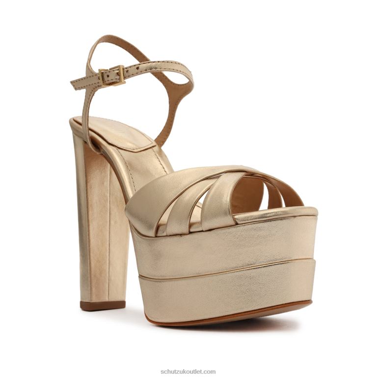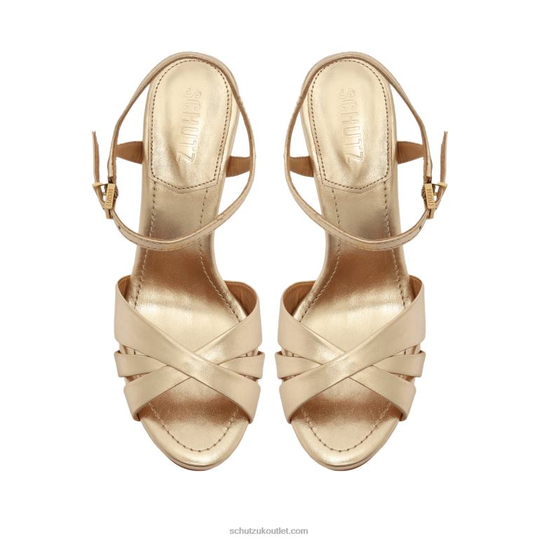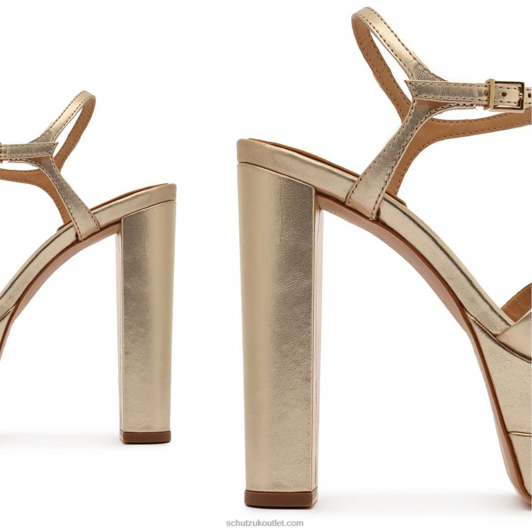 Materials: Metallic Leather | Cow leather lining | Cow leather outsoleUpper format: MultistrapsRubber patch at the heel.Heel Type: High HeelHeel Style: PlatformClosure Type: Buckled strapToe Style: Round toeCounter Type: OpenPlatform Height: 63mmHeel Height: 5.6in | 143mm
