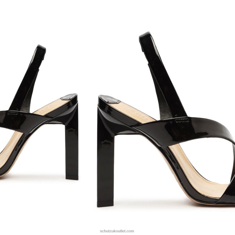 Materials: Patent Synthetic | Cow leather lining | Cow leather outsoleUpper format: Double strapHeel Type: High HeelHeel Style: StilettoHeel Cover: Metallic CoverClosure Type: Elastic closureToe Style: Round toeCounter Type: OpenHeel Height: 4.3in | 110mmRubber patch at the heel.