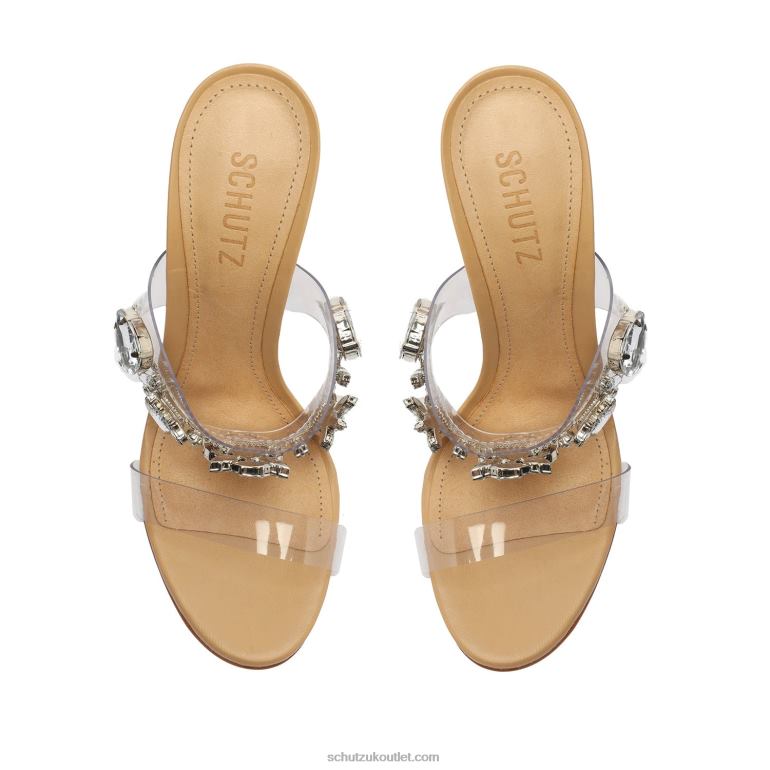 Materials: Vinyl | Cow leather lining | Cow leather outsoleUpper format: Double strapUpper Detail: Embellished upperRubber patch at the heel.Heel Type: High HeelHeel Style: SculpturalClosure Type: Slip-onToe Style: Round toeCounter Type: Slip-onHeel Height: 3.9in | 100mm