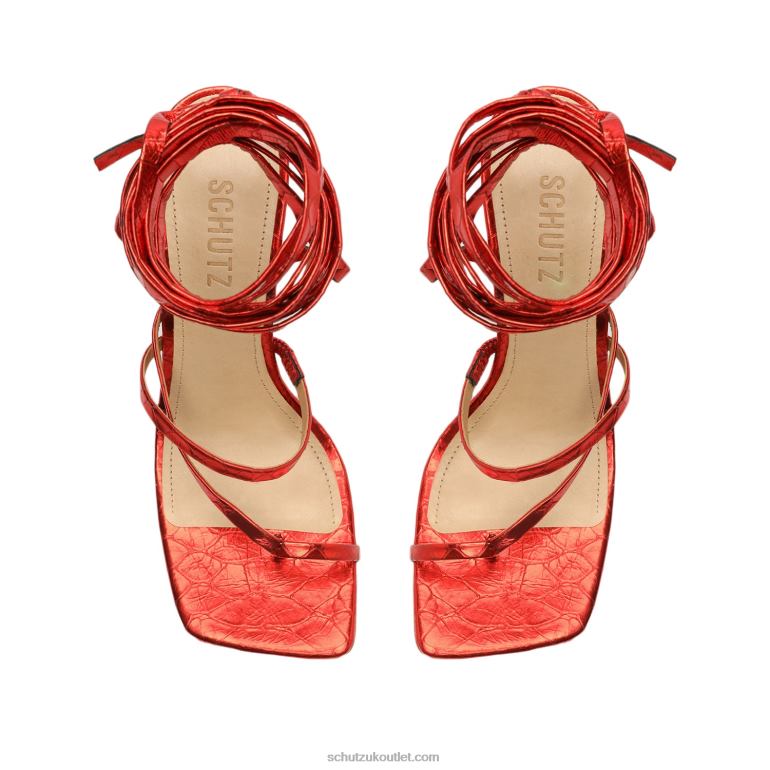 Materials: Metallic Crocodile-Embossed Leather | Cow leather lining | Cow leather outsoleUpper format: MultistrapsHeel Type: High HeelHeel Style: StilettoClosure Type: Lace-upToe Style: Square toeCounter Type: OpenHeel Height: 4.3in | 110mmRubber patch at the heel.
