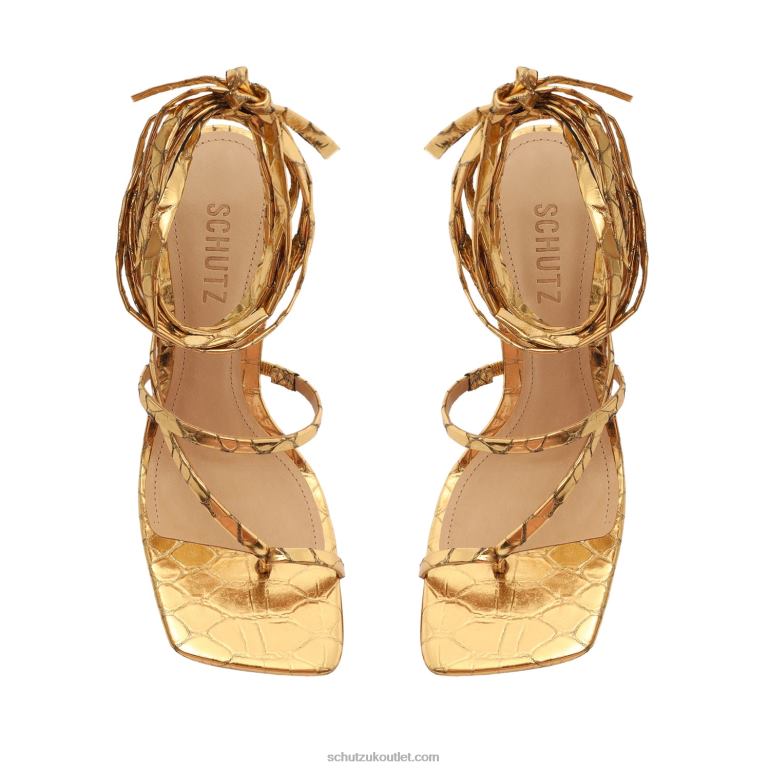 Materials: Metallic Crocodile-Embossed Leather | Cow leather lining | Cow leather outsoleUpper format: MultistrapsHeel Type: High HeelHeel Style: StilettoClosure Type: Lace-upToe Style: Square toeCounter Type: OpenHeel Height: 4.3in | 110mmRubber patch at the heel.