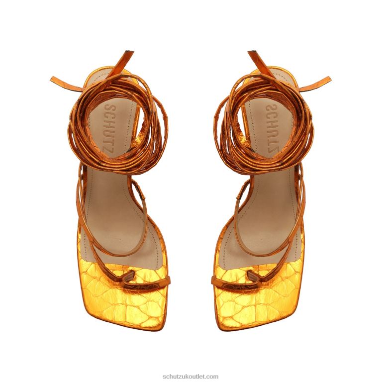 UK Schutz Lily Metallic Leather Sandal Orange 806T8380