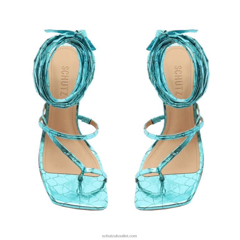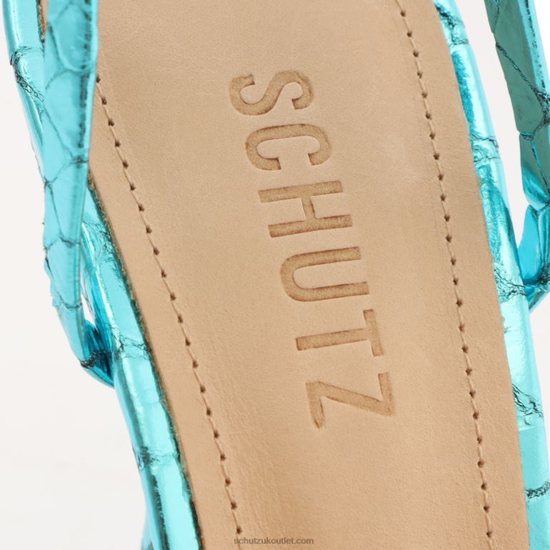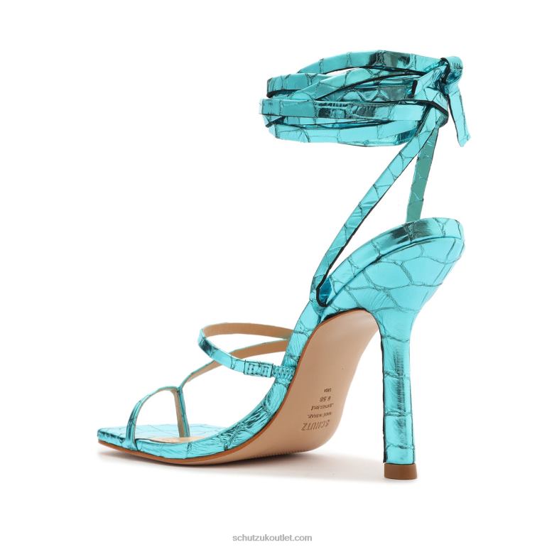 UK Schutz Lily Metallic Leather Sandal Turquoise 806T8379