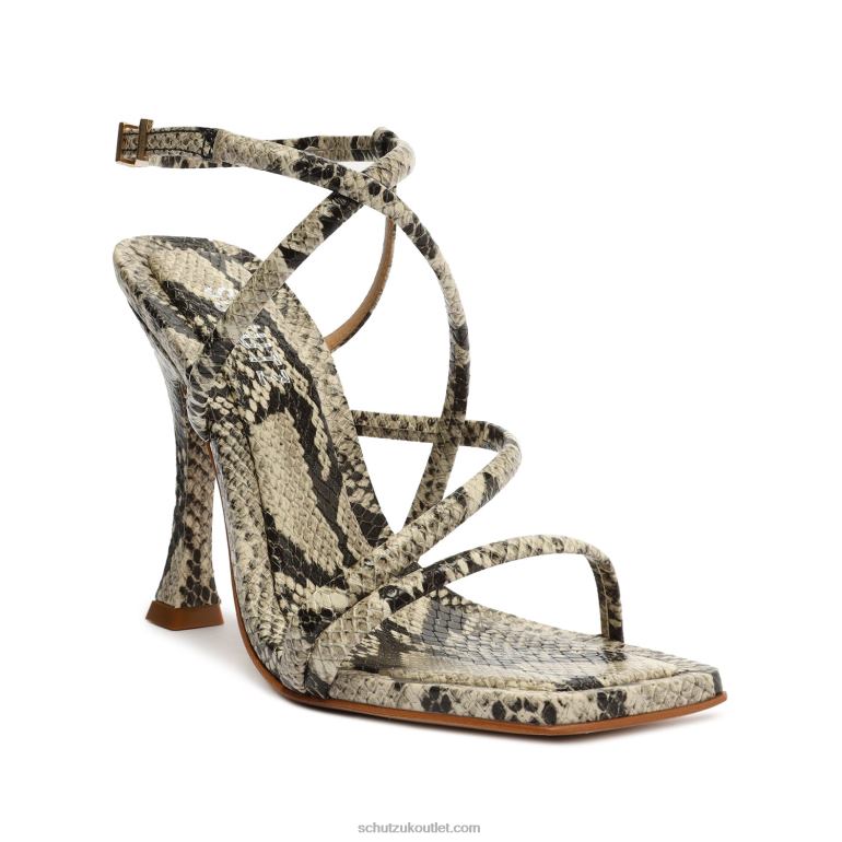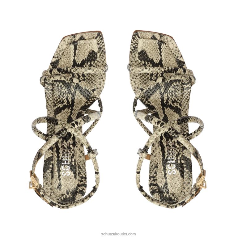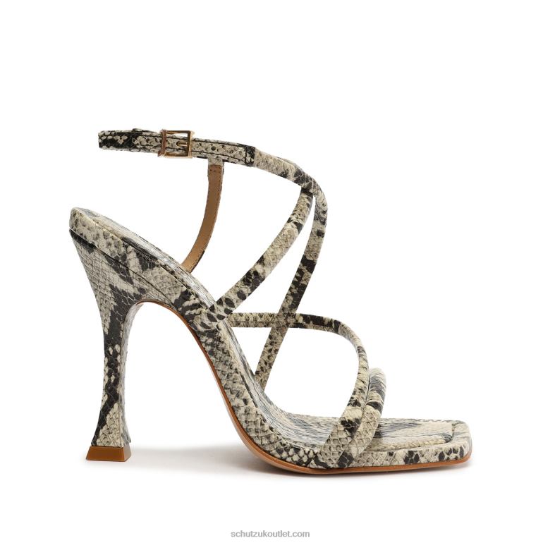 Materials: Snake-embossed Leather | Cow leather lining | Cow leather outsoleUpper format: MultistrapsRubber patch at the heel.Heel Type: High HeelHeel Style: SculpturalClosure Type: Buckled strapToe Style: Square toeCounter Type: OpenHeel Height: 4.4in | 113mm