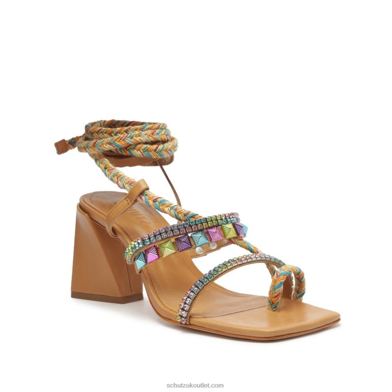 The Musa Mid Sandals are here to give your outfit a pop! Crafted from quality leather, these sandals feature straps covered in stunning gems, an ankle tie, and a block heel.