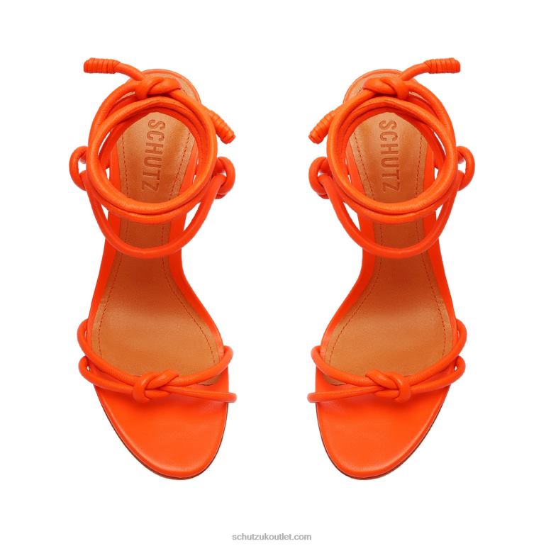 This stylish Nicky Nappa Leather Sandal features a block heel crafted from nappa leather in a flame orange color, with intricate knots along the straps to give a sophisticated look. The block heel provides stability and support, making it comfortable and perfect for any occasion.