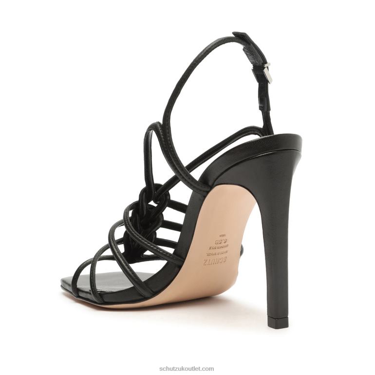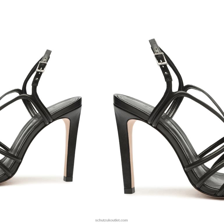 Octavia is a strappy silhouette ideal for elevating looks from day to dark. It has been designed in leather with a stiletto heel and square-shaped toe.