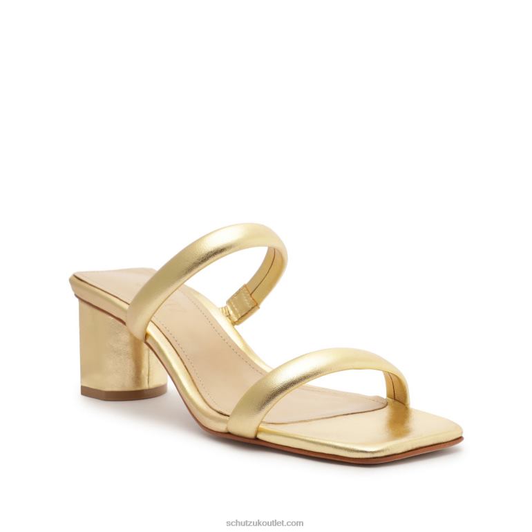 Give your cut off denim shorts and white tee fit a pop with our Ully Lo Metallic Leather Sandals, featuring a mide block heel, two simple front straps, and square toe.