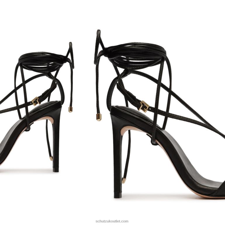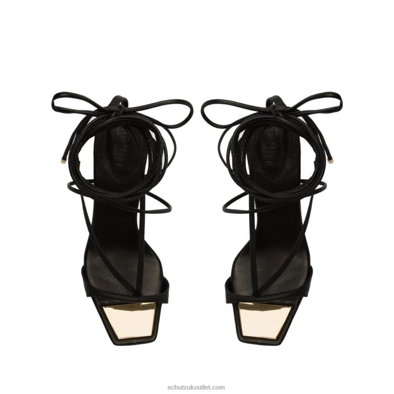 Materials: Leather | Cow leather lining | Cow leather outsoleUpper format: MultistrapsRubber patch at the heel.Heel Type: High HeelHeel Style: StilettoClosure Type: Lace-upToe Style: Square toeCounter Type: OpenHeel Height: 3.9in | 100mm