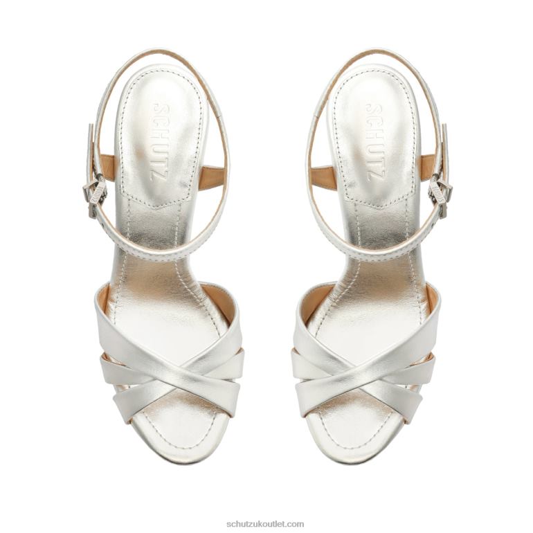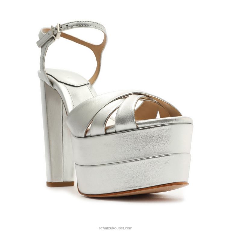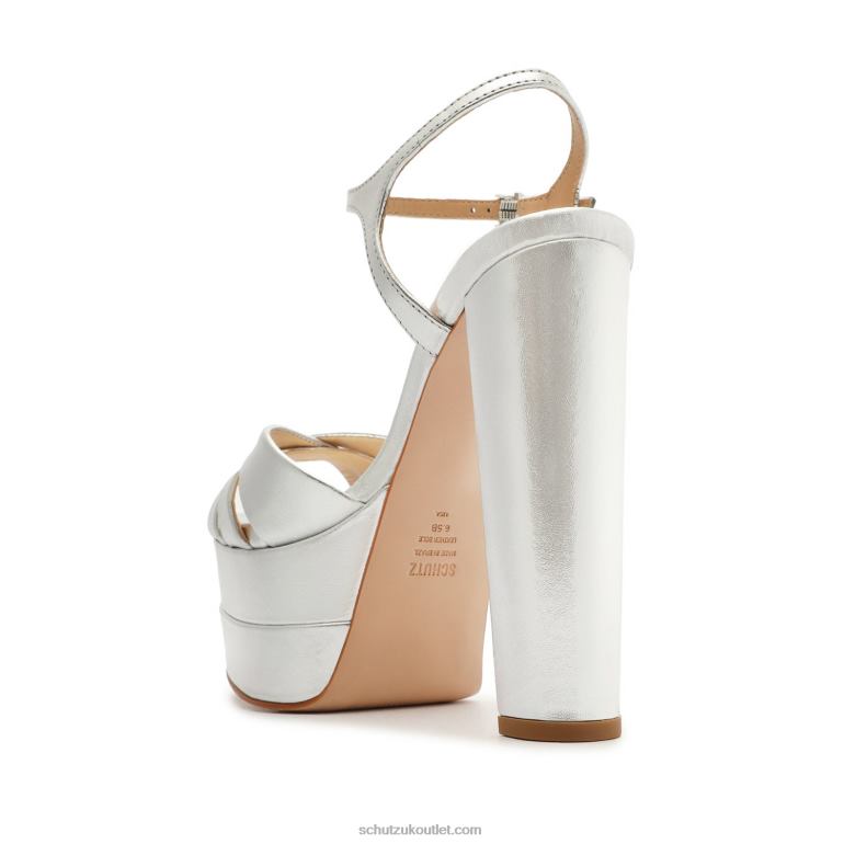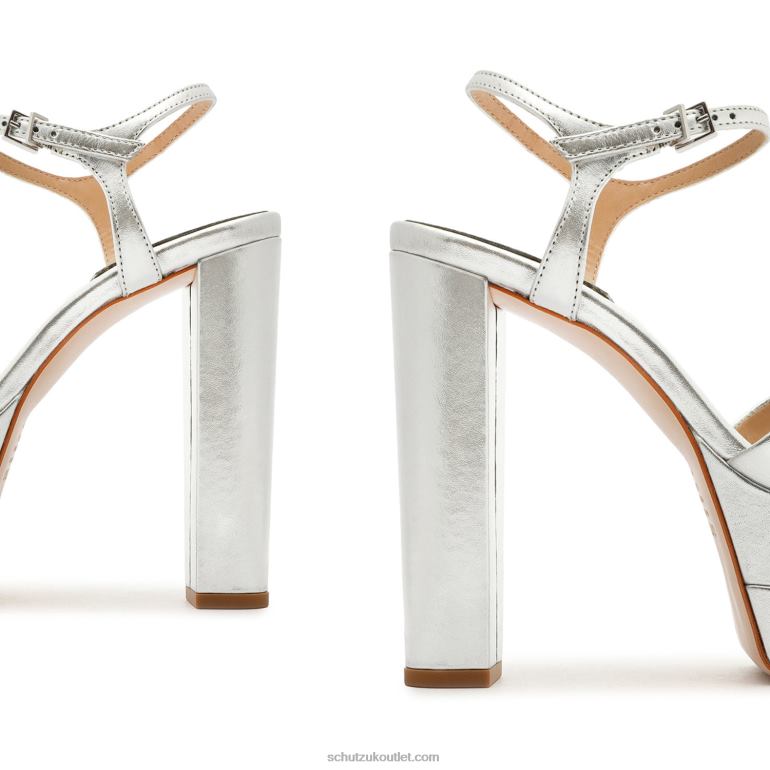 Materials: Metallic Nappa Leather | Cow leather lining | Cow leather outsoleUpper format: MultistrapsHeel Type: High HeelHeel Style: BlockClosure Type: Buckled strapToe Style: Round toeCounter Type: OpenPlatform Height: 63mmHeel Height: 5.6in | 143mmRubber patch at the heel.