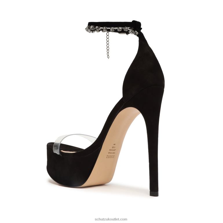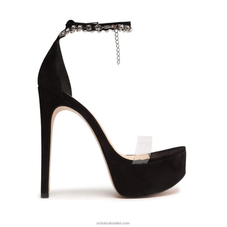 Introducing Lah Sandal: an on-trend Spring Platform crafted in Vinyl and Nubuck, with a removable crystal strap at the ankle. An eye-catching shoe you will love wearing.