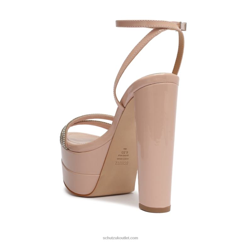 Materials: Patent Synthetic | Cow leather lining | Cow leather outsoleUpper format: MultistrapsUpper Detail: Embellished upperHeel Type: High HeelHeel Style: BlockClosure Type: Buckled strapToe Style: Round toeCounter Type: OpenPlatform Height: 63mmHeel Height: 5.6in | 143mmRubber patch at the heel.