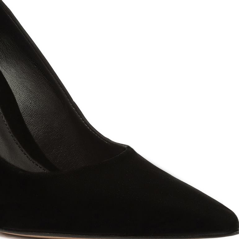 The Amal Pump is a modern take on a classic silhouette, crafted from supple suede with a stiletto heel and pointed toe.