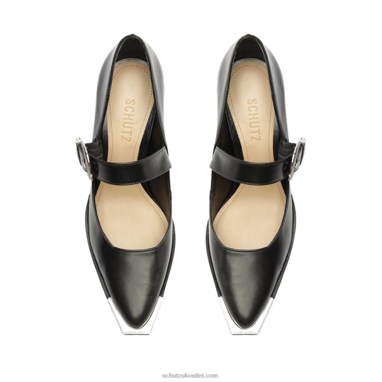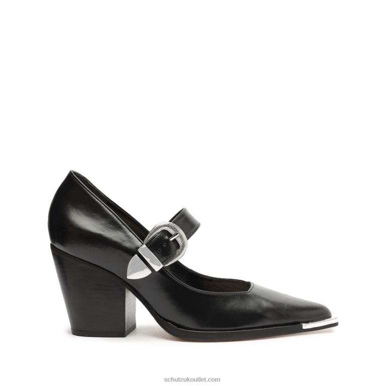 Materials: Leather | Cow leather lining | Cow leather outsoleUpper Detail: Embellished upperRubber patch at the heel.Heel Type: Mid heelClosure Type: Buckled StrapToe Style: Pointed toeCounter Type: ClosedHeel Height: 3.2in | 83mm