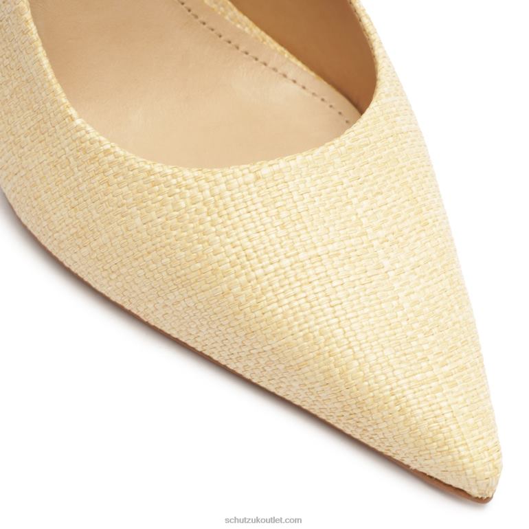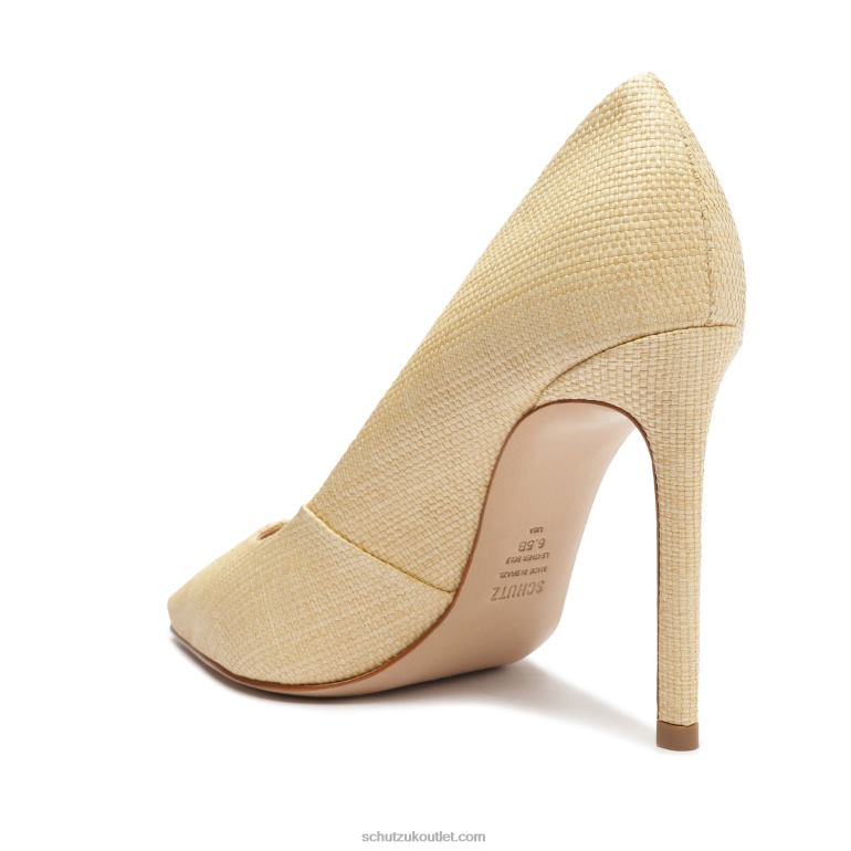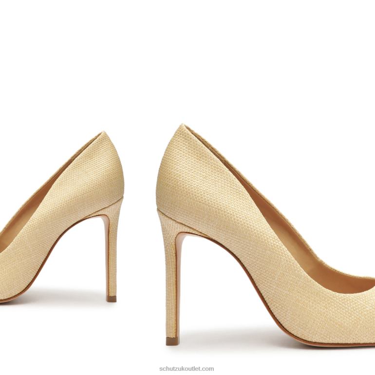 Materials: Raffia| Cow leather liningUpper format: Regular shaped upperUpper Detail: Plan upperRubber patch at the heel.Heel Type: High HeelHeel Style: StilettoClosure Type: Slip-onToe Style: Pointed toeCounter Type: ClosedHeel Height: 3.9in | 100mm