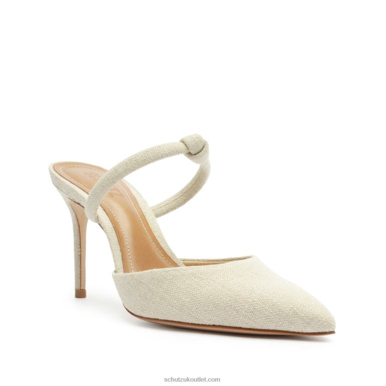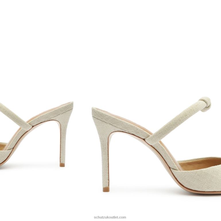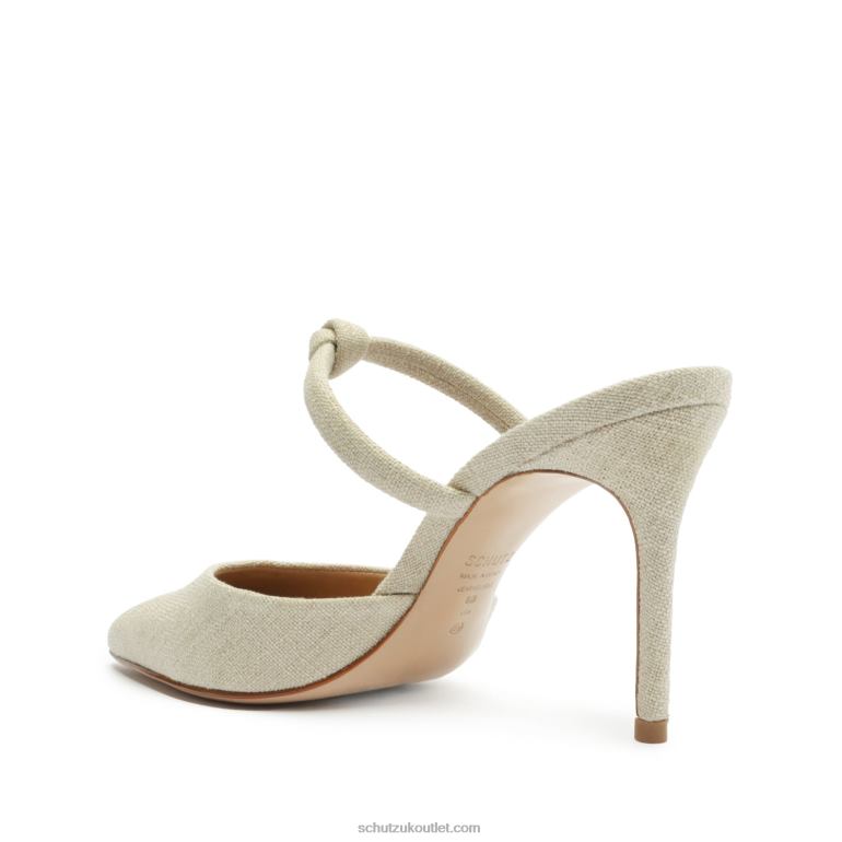 Material: Linen Fabric |Cow leather outsoleUpper format: Regular shaped upperUpper Detail: Embellished upperRubber patch at the heel.Heel Type: Mid heelClosure Type: Slip-onToe Style: Pointed toeCounter Type: Slip-onHeel Height: 3.3in | 84mm