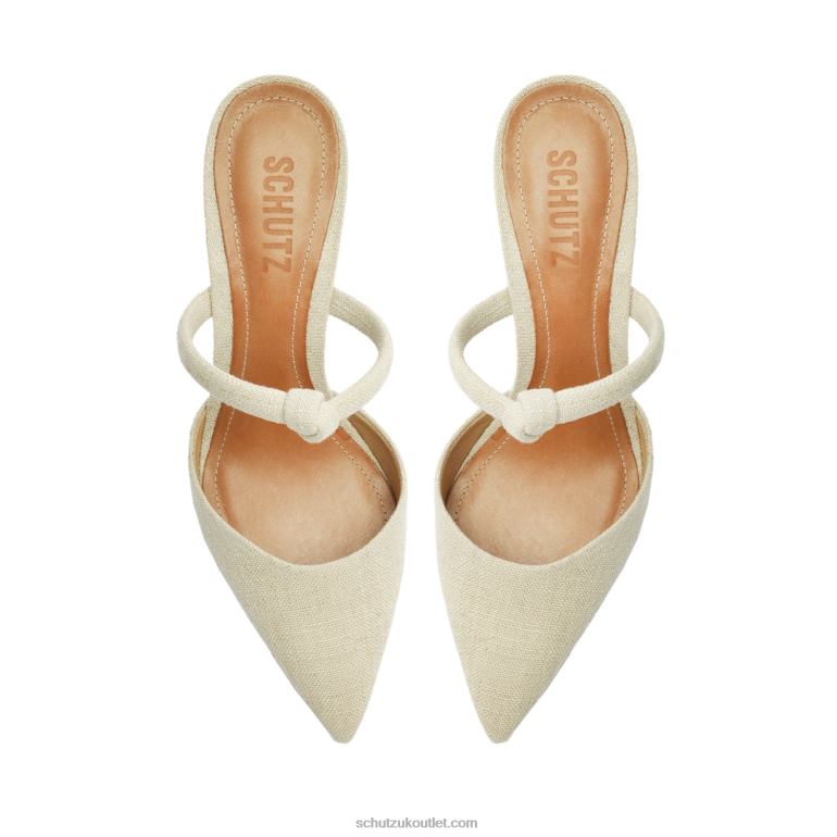 Pearl is a polished open-back pump inlinenshowcasing a pointed toe, knotted strap, and stiletto heel.