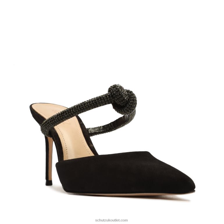 Materials: Nubuck | Cow leather lining | Cow leather outsoleUpper Detail: Embellished upperRubber patch at the heel.Heel Type: Mid heelClosure Type: Slip-onToe Style: Pointed toeCounter Type: OpenHeel Height: 3.3in | 84mm